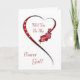 Inbjudan till en blomsterflicka. En underbar inbjudan till dina bröllopsdeltagare. De kommer att värdesätta detta kort för alltid. Ett modernt grepp på ett traditionellt tema visar ett virvlande hjärta med röda rosor. Copyright Norma Cornes.