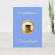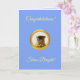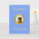 Vis uggla med gyllene cirkel på ljusblå Grattis-kort. Alla texter är redo att anpassas. Studier, nytt jobb, befordran och alla betydande livsstilsförändringar.