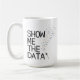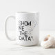 En design med frasen "Visa data för mig". En perfekt som är designad för att väcka en passion för analys och informationskraft. Mugg är ett trollspö med vismisk tecknad, som utmärker en spricka av trollliknande symboler. Magin visas med färg som är standard och som vanligen associeras med datavisualiseringar - blått och orange - som symboliserar datastyrda insiktens omvandlingsförmåga. Upphovsrätt och Designad av JA Murphy Designing LLC (2022)