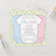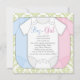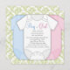 Admatta mint grönt-damm med rosa, blå och vit baby-skjortor i baby visar duschinbjudningar. Den här genderna för dämpad grönt visar att det är enkelt att anpassa en inbjudan till babyduschning genom att lägga till information om din händelse, stil, teckensnitt, storlek & färg och ordalydelse. Observera - alla inbjudningsformgivningar som du hittar på Zazzle är tryckta bilder utan verkliga juveler, bogar, upphöjda, präglade eller tillagda delar eller delar.