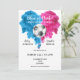 Blåfotboll och rosa fotbollsklass genderna avslöjar party inbjudan