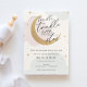 Gender Reveal-inbjudan med guld glittery måne- och roligt-skriptet "Twinkle twinkle Little star" Anpassa med din information eller klicka på "klicka för att anpassa ytterligare" för att justera teckensnittstypen, storlek, färg.