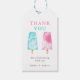 I den nutida och moderna genderna visas partiernas märkre med vattenfärgstryck som illustrerar rosa och blåa popsiklar. I texten står det: "Tack för att du firar med oss."