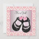 Vansinbjuden till rosa och svart babydusch för rosa. Den här söta rosa dammhandjur med babydusch innehåller ett fint par svarta baby-skor med rosa rosenknoppar och rosa båge. Anpassa enkelt den här söta rosa och svart babyduschinbjudan för din händelse genom att helt enkelt välja orangen "Anpassa den!" för att börja lägga till din händelseinformation, teckensnitt stil, teckensnitt storlek & färg och ordalydelse. Observera att alla kort- och inbjudningssymboler som du hittar på Zazzle är tryckta bilder utan egentliga juveler, bogar, upphöjda, präglade eller tillagda delar eller delar.