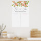 En roligt poster att få se party vid genderna! Illustration av vattenfärgspersikor på träd gren med texten "han eller hon" på översta raden där gästerna uppmanas att rösta om vad de kommer att göra vid tänkan av baby-genderna. Gäster kan rösta på en grupppojke eller en gruppflicka. En roligt spelaktivitet att utföra på party.