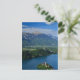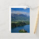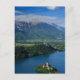 Se över Sjö Bled till ökyrkan och klippslottet från Mala Osojnica, Slovenien.