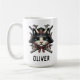 Fängslande mugg med ett visst samurajkatthuvud som bär en autentisk samurajhjälm, med snygga japanska svärd som pryder bakgrunden. Denna unika design blandar kattaktig charm med krigaranda, vilket gör den till en måste-ha för äventyrare. Omfamna det gamla Japans lockelse med denna exklusiva Samuraj Katt-mugg.