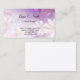 Detta visitkort visas med en blommig bakgrundsmönster.