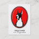 Visitenkort för Mantle Grand Danois i rött och svart med Boston Grand Danois
