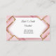 Det här affärskortet visas i en rosa och guld färg, abstrakt mönster med svart text.