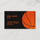 Anpassadevisitkortmall med sporttemat för baskettränare, lag eller spelare som presenterar en typisk orange basket på svart.