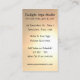 Från rotar upp, presenterar denna yogastudiovisitkort en urblekt vertikal text för för solljusbakgrund och elegant för affärsnamn på beklädasidan av kortet. Baksidaen av kortet har rum för att markera typer av klassificerar erbjudet, klassificerar tider, din website- och/eller socialmassmediaadress och annan information. Designat att imponera med en koppla av yet invigorating känselförnimmelse.
