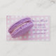 En nätt visitkort med ett foto av en delikat purpurfärgad fransk macaron på en rosa polka pricker bakgrund. Perfekt för bagerier, konditorer eller någon som gör och säljer franska macaronkakor.