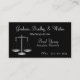 Kolsvart advokat visitkort med diagram, av fjällen av rättvisa, i silver tonar och text i vit och tänder - grått. Text är fullständigt anpassadet i stil, format och färg.