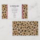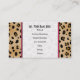 En visitkort som presenterar en leopardtryckbakgrund med rosor, klipper. Svart text över ren vit. Personifiera med din information.