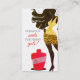Den attraktiva kvinnan som ha på sig en mini- kjol för leopard med en polsk jätte- nagel, borstar på denna visitkort för en nagelkonstnär eller manicurist.