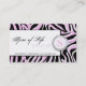 Främja din nageltekniker övar eller brunnsorten och salongen med denna som är ljus - rosor, den svartvita modern och för snyggt busen texturerade zebra tryck och diamantvisitkorten. Denna visitkort presenterar en buse, texturerad tryckbakgrund för sebra (djur) med en rektangulär provkarta som smyckas av en cirkla som gränsar en monogram med tre rundadiamanter. Detta är modellerar den sätta en klocka på, moderna och stilfulla visitkorten också en underbar match för modeformgivare, musikbranschen, sångare, musiker, fastighetsmäklare, handväskaformgivare som beklär diversehandel, underhållningsindustrin, dansare, aktriser, makeupkonstnärer, smyckendiversehandel, juvelerare, diamantreor, detaljhandeln, cosmetologists, byråer, dansstudior, partyplanners, händelseplanners och mer. Pams ©2011 designer.