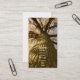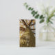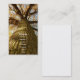 Visitkort med fotoet av oakträd som tittar upp på den enorma ridged stammen och grenar och kronan av gultlöv med blå himmel bakom. Text är anpassadet.