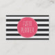 Denna chic & flott händelseplannervisitkort presenterar görad randig bakgrund för klassiker den svartvita vågrät. Överst av bakgrunden är ett ljust rosa dekorativt cirklar med en anpassadetext som läser "händelseplanneren". Baksidaen av kortet är enkel vit med rum för ditt namn, jobbtitel, & kontakten specificerar. Denna är idealvisitkortarna för någon i händelsen eller bröllop som planerar bransch.