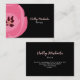 En modern stilfull visitkort med en svart bakgrund beklär och drar tillbaka på. Bekläda särdrag avbildar av en shock rosatulpan som kikar från vänster sida. Personifiera med ditt namn i rosor skrivar och din titel i stilsort för vitsvartbrev till höger av tulpan. Personifiera motsatssidan med din information om kontakten.