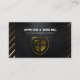 Härlig visitkort för svart- och guldsäkerhetssymbol. Säkerhetsmattesvarten stålsätter visitkortar som du kan skräddarsy med den flott designen, som inkluderar en svart metallisk lik bakgrund med guld skyddar logotypinslag och textorienteringen, du kan skräddarsy. Bäst visitkortar för teman släkta till tillsatta lagar, hem- säkerhet, datorsäkerhet eller den privata kriminalaren.