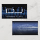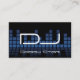 En mall för cooladj-businesscard med en bedöva design av blåttutjämnarelaser tänder i natthimmlen som kombineras med svart panelljusmusik noter på en mörk bakgrund. Det perfekta kortet för en professionell DJ eller producent.