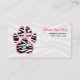 En visitkort som presenterar ett zebra trycktasstryck beklär på. Baken är zebra tryck. Personifiera texten beklär och drar tillbaka på med din information.