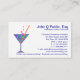 Färgrika för coctailexponeringsglas för lycklig timme visitkortar. Personifiera dessa, genom att tillfoga ditt namn, information om kontakt, och/eller ett roligt meddelande med den lätta mallen kliver. Mer tillgängliga kortaktieoptioner. En perfekt visitkort för Bartenders, Mixologists, pubar, coctailvardagsrumar, nattklubbar, restauranger, partyPlanners eller som ett personligt kontaktkort. Detta abstrakt konstmartini exponeringsglas i vibrerande deppighet, lila och gröntar kommer färdigt med ett gult sugrör, bubblar rosan och en partyinställning. Margaritor, Martinis eller Mojitos… är det coctailtimmen någonstans