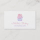 En muffinillustration med en glasyr på kaka- och hjärtadekor med en blandning av digitala lutningstrukturer av rött, rosa, lilor och blått. Nätt och elegant visitkort för bagare, konditor och släkta affärer.
