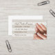 Manicuristvisitkortmallen i en härlig design manicured däribland nicely naglar på mjuk händer, tillsammans med en nätt bakgrund för blom- design. Designat för servar släkt till manicuren, pedicuren, nageltech eller skönhet.