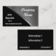 En krökt metallyta i rostfritt stålkromlook på en dynamisk svart bakgrund för dina namnstativ ut som en djärv unik professionellvisitkort för look 3d. Skräddarsy lätt med din egna information. Djärv svart bokstäver på en sida av bekläda och tänder - gråna text på andra sidan, och på baksidaen visas eller ändrar lätt stilsortsstilen och färgar. Ett stiligt och starkt tittar kort som speciellt är underbart för industriella kompetent handel i konstruktions- och byggnadockupationar och automatiska handel. Mer information kan vara pålagd baksidaen som väl på den svart bakgrunden. Utskrivavet på papper, inte faktisk metall. En stark visitkort som står ut från vila.