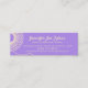 Slanka magra handarbetevisitkortar. Perfekt för Knitters, virkningarbetare och nålcrafters. Personifiera med ditt eget specificerar. Utrymme på omvänt som inkluderar information av hantverken som du ger för att hjälpa dig att få mer arbete. Bedöva kortet med ull och stickan planlägg i ljusa purpurfärgade och kräm- toner, om du önskar mindre inte-krävd borttagningstext för information enkelt.