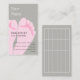 Visitkortar för podiatrists och chiropodists. Designen presenterar en para av rosa fot. Baksidaen av kortet innehåller ett raster, som data, tajmar och specificerar in i av sex tidsbeställningar kan skrivas in.
