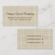 Yrkesmässiga och eleganta stilfulla visitkortar med ett retro mönster för vintagelinnetyg ser, både på bekläda och på baksidaen av kortet. Ljust - bruntet och beigen tonar med det subtila randkortet. Lätt att tillfoga din egna beställnings- information på både bekläda och baksida av detta unika kort. Notera detta coolt, den realistiska designen skrivs ut på papper, är inte det faktiska linnet.