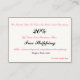 En olik använda för visitkortar. Angeline och Företag tro, i att ge, tackar dig kort för deras kunder, och ibland tackar en extra dig för deras köp. Visitkortar ger företagsägaren en kostabesparinglösning som kunden kan använda eller ge bort till en intresserad vän eller familjemedlem. Bekläda av den nedanföra visitkorten är företagslogotypen, baksida av kortet ger allt kunden ska behovet att spara på deras netto köp. Med flera alternativ som väljer från dess en ingen - brainer.