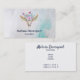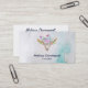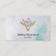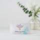 Affärskort med turkos- och pastellbakgrund med vattenfärg. En boho chic animal skalle med blommigt buquet på huvudet och små fjärilar som flödar om. visitkortsmall