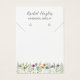 Blommigtens smyckeskort dekoreras med dekorerade vattenfärgade blommor och löv. Använda en slå för att skapa hål för dina örhängen och saxar att skära linjer för ditt halsband. Du kan ta bort de cirklar och linjer som du inte vill ha använda för. Ursprunglig vattenfärg © Michele Davies.
