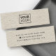 Ökar mini-produktkortet med logotyp med centrerad anpassningsbar och social-medieikoner på en ljusbrun, tryckt visning med bildbakgrund. Öronstödlinjerna kan justeras genom att man lägger till och tar bort utrymmen i mallen fält och genom flytta i hela inslag i verktyg.