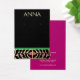 Festive add logotyp earring visning holder with two print hål ’markers’ (markörer). Svart bakgrund med grönt, magenta och guld gräns som är utsmyckat.