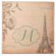 Paris Frankrike Eiffel Torn Shabby chic Old Åldras Papper Parchment Note Bok Monogram Initial Personlig Anpassningsbar Fabric Mönster Decorative Visning Tile