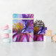 Ljus levande blomfa med blomsterkransar och magisk fjäril, modern vattenfärg i lila, violett, rosa, fuchsia, blågrön iriserande färg med guld och silverfolie av Bulgan Lumini (c)