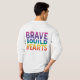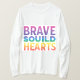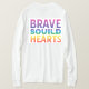 T-shirten har texten "Modiga själar, Förenade hjärtan" i en vibrerande regnbågsgradient. Varje ord är ett annat färg som skapar en väl synlig och upplyftande utformning.