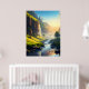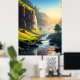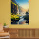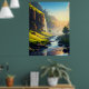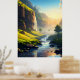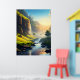 En häpnadsväckande bild av en serendal där kristallklar vatten flyter försiktigt genom ängar med lush grönt, med handbojor och kaskadvattenfall som tappas i gyllene solljus. Detta andningslandskap fångar naturens skönhet och lugn, skapar perfekten för murkonst eller murdekoration.
