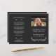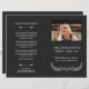 Elegantens begravningsprogram i ett svartvitt, med elegant typsnitt och en läcker andedräkt. Lägg till ett foto av din älskade tillsammans med deras namn och levnadsår. Namn är skrivet i ett söt-skript. På baksidan kan du skriva obituarien och programmet. Fäst det själv för ett konkret program!