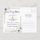 Nautical Boutique Co.:s postkortsdesign för "Spara datum" i marinblått och vitt har modern typsnittsdesign som är ihopparad med ett traditionellt blocktypsnitt, vilket ger denna design en exklusiv stil. Den är accentuerad med vackra akvarellvita anemoneblommor med blåa mittpunkter, en nautisk repborder och en passande ankare- och blomsterdekoration i mitten. Baksidan är marinblå med överdimensionerade vita anemoneblommor. #Nautisk #Anemon #SparaDatum