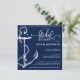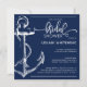 Fira den blivande bruden med detta nautiska inspirerade inbjudningskort för möhippan. Det här kortet har en stor skissankare på den lämnat sidan med texten till högerna. Möhippan är skriven i ett handskrivet teckensnitt och ett speciellt hjärta bredvid duschen. Kortets baksida har ett ankare mönster.