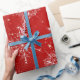 Trendiget vit misshandlad abstrakt jul snöflingor mönster över röd