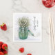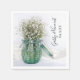 Eleganten White Baby's Band i Blue Vas Bröllop Pappra Napkins kan vara personlig med namnen av bruden och brudgummen och datum för använda på party-möhippan eller giftermål-party och mottagning. Dessa engångsblöjor av rustisk chic är märkta med ett foto av blommigt blått glas burk fyllt med vita baby andblommor eller Gypsophila paniculata och vit satin.