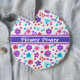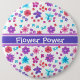 En söt runt Button eller Badge, med en mönster av ljusa blommor i lila, turkos, rosa och orange på vit bakgrund, från en handmålad papper kollage av Judy Adamson. Om du vill kan du enkelt ändra bakgrunden till färg genom att klicka på Redigera.