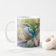 Vit bestritt Iridescent Teal Vinge Fantasy Bird Kaffemugg